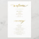 Modern enkel minimalistisk faux-skript i guld trendiget ren, vit ceremoni och party BUDGET, prisvärt bröllopsprogram, PAPPER FLYER-mall med kalligrafi av chicens trendig. +++++++++++ Enkel att anpassa med anpassningsbarna på båda sidor! ++++++++++++++ LÄS DETTA INNAN DU KÖPER! Det här är ett program med låg budgetkostnad och som är tryckt på en FLYER-papper (reklamtyp). +++ Observera att BUDGETENS PAPPRA ÄR THIN - Du kan uppgradera om du vill att kortet ska skrivas ut på cardstock +++ ENVELOPES INTE INKLUDERAS.