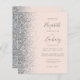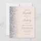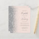 Den lämnat kant i eleganten är en modern bröllopsinbjudan från silver i glitter gräns. Anpassadet kombinerar grått-handskrift, tryckplåt och kursivt typsnitt på rosa-bakgrund. Den omvända sidan har en passande och silver-design.