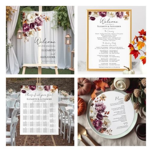 Burgundy Floral Gold Arch Fall Wedding CollectionDesignad av CaMi Designs