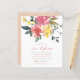 Kärlek är i blomning! Budgetera inbjudningskort för möhippa. Ett enkelt och modernt inbjudningskort för möhippan med en handmålad vattenfärgad bukett, skript och elegant typografi. Kortets framsida har en blommigt buquet. Det finns ro, peonier och kornelia blommor som är kapslade inuti eukalyptus grey och andra botaniska löv. Vår blommor befinner sig i ett djärvt och ljust färg-schema av rosa, rött och gult. Nedan står det "kärlek är i blomning", med "i blomning" i ett flytande skript med vackra kalligraferingslänkar och blomstrar i båda ändar. Information om namn och händelser för briden som ska visas under i klassisk serif-typografi. Ett ytterligare tryck på typografin är att "osa" skrivs i chicens skriptbokstäver. Lakan går tillbaka till ett vitt grönt mönster mot en mjuk bakgrund. Perfekt för vår eller sommarens möhippor. Modern blommigt inbjudningskort för möhippa. Den här inbjudan är en redigerbar online. Klicka bara på "Anpassa den här mallen" för att komma igång. Om du vill ha mer avancerade redigeringar väljer du "klicka för att anpassa ytterligare" för att få åtkomst till Zazzles Design Verktyg. Observera att korten skrivs ut när du ser dem på skärm när du beställer dem, så kontrollera dubblan efter typos! Som en del av budgetvalet för Zazzle är lakan inte en vanlig storlek eller papper kvalitet för inbjudan. Om du vill ha den här designen på ett inbjudningskort kan du hitta den i vår butik eller använda på Zazzle Make Maskin för att överföra den till valfri produkt. Observera att vi bara rekommenderar att du avslutar halvglans för det pappra budgetalternativet, att platsens avsluta inte passar för använda som inbjudan. Andra versioner av den här designen är tillgängliga i den samling som är länkad på den här sidan. Bläddra i butiken om du vill ha mer inbjudningskort för möhippa.
