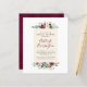 Elegant blommigt inbjudningskort för möhippa med översta och grund vattenfärgade blommigtar i skuggor av rosa, marsala och burgundi med lush grey. Som en del av budgetvalet här på Zazzle, är dessa inbjudningar inte komar med kuvert och passar inte heller in i ett kuvert av standardstorlek. Den närmaste storleka är A6, men det kommer att finnas en lucka på ungefär en halv tum. Om du inte har något emot att det saknas snus kan du använda så allmänt tillgängliga A6-kuvert. I annat fall kan denna design överföras till ett standardformat 5 x 7 (som levereras med kuvert) med hjälp av designöverföringen verktyg. Som en ungefärlig guide skulle 100 inbjudningar till budgeten (inklusive en volymrabatt) kosta cirka 39 dollar medan 100 standardbelopp på 5 x 7 inbjudan inklusive kuvert skulle kosta cirka 135 dollar. Ditt val kan variera beroende på Zazzles tillgängliga promokoder, försäljning på hela platsen eller prisförändringar.