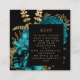 Den här eleganten har ett moody bröllop OSA-kort en lush, romantisk blommigt bouquet i turkos med guld faux foil och glitter foliage på svart bakgrund. Anpassa rosan ro i typsnitt snyggt på en svart rektangel. Generera enkelt en QR-kod på baksidan genom att ange webbadressen till bröllop webbplats.