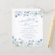 Planerar du en speciell möhippa? Denna charmerande budget för blommigten inbjudningskort för möhippan är dekorerad med blåblommor och fjärilar. Det står "något blått före mig" i snyggtens typografi. Enkelt anpassade. Ursprunglig vattenfärg © Michele Davies.