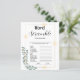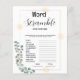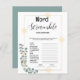 Behåll dina gäster med den här roliga Möhippan Game-Ord-skandalen. Möhippa Ord Scramble är ett enkelt spel för möhippan som gäster i alla åldrar kommer att kunna njuta av. Gästspelare försöker så snabbt som möjligt att lösa upp det bröllop-relaterade orden. Kortet är skapat som mall så att du kan ändra befintliga designfunktioner för "förvrängt ord" lämnat hörngrönt inkorporerat i en blanka rektangel med grönt grått-bakgrund. Enkel och Elegant. Den här Möhippan-spelmallen kombinerar två olika typsnitt för mer dynamiskt utseende. I fodral behöver du hjälp med designen eller så kan du gärna kontakta butiken om du vill byta ord.