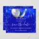 Ett trendigets royal blå bakgrund som dekoreras med royalets blå droppar, konfekt och ballonger. Anpassa och lägg till datum och namn/ålder. Texten: Spara datumet skrivs med ett stort trendig-handskript i stil.