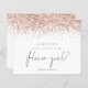 Budgetera Ro Guld Glitter Skriptskolejsbegäran. Ett budgetalternativ som är prist med 4,5 x 5,6 tum. Finns i ett SEMI GLOSS 110 lb CARD LAGRAR som är standardalternativet (tjockare för inbjudningar). Flower Girl finns i ett skript för snyggt set finns i mitten. En gräns av faux glitter i ro guld ligger högst upp på båda sidor.