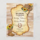 Budgeterad Rustic vintage ser ut som cowboystövlar och hatt med solblommor som kallelse till bröllop.