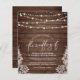 Ett klassiskt tema för vintage land i ett modernt stil! Den här konstruktionen har en rustik träbakgrund med ljus överst och vackra, ömtåliga och vintage snöre i grund-hörnen. Texten visas i mitten med "bröllop of" i skriptbokstäver för att lägga till extra elegant touch! Perfekt för bröllop utomhus i vår, sommar eller fall. Kort som är bakåtvänd mot bakgrund av rustiskt trä. Anpassa den här designen genom att klicka på knappen "Anpassa" och skriva in i textrutorna. Som en del av budgetvalet för Zazzle är lakan inte en vanlig storlek eller papper kvalitet för inbjudan. Om du vill ha den här designen på ett inbjudningskort kan du hitta den i vår butik eller använda på Zazzle Make Maskin för att överföra den till valfri produkt. Glöm inte att kolla upp de många olika pappra storlekar, struktur och former som Zazzle har att erbjuda! Matchande artiklar i vår butik.