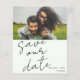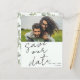 Den här eleganten "spara datumet"-meddelandet är perfekt för att få era bröllop-planer i rörelse. Den har en fotomall och stor typografi i svart på sidbakgrunden. På mallens baksida finns en vit vattenfärg, eukalyptus mönster. Anpassa med dina egna uppgifter. Se andra objekt i den här unika och ursprungliga samlingen.