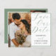 Elegant spara datum meddelande är prefekt för att få era bröllop-planer i rörelse. Den har en fotomall och stor "spara datumet"-typografi i sidans grönt mot en vit bakgrund. Anpassa med dina egna uppgifter.