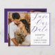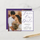 Elegant spara datum meddelande är prefekt för att få era bröllop-planer i rörelse. Den har en fotomall och stor "spara datumet"-typografi i djup lila mot vit bakgrund. Anpassa med dina egna uppgifter.