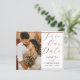 Elegant spara datum meddelande är prefekt för att få era bröllop-planer i rörelse. Den har en fotomall och stor "spara datumet"-typografi i terracotta mot en vit bakgrund. Anpassa med dina egna uppgifter.