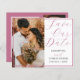 Elegant spara datum meddelande är prefekt för att få era bröllop-planer i rörelse. Den har en fotomall och stor "spara datumet"-typografi i rosa mot en vit bakgrund. Anpassa med dina egna uppgifter.