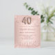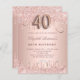 En modern, snyggt och glamorös inbjudan till en 40-årsdag party. En guld-övertoningsbakgrund i ro med elegant ro guld, faux glitter dropp, färgdroppstift. Namn är skrivet med ett modernt skript för färgaden ro guld i mörk, skrivet med stil. Anpassa och lägg till information och foton om party. Nummer 40 skrivs med ett stil-skript med ballong.
