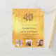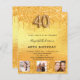 En modern, snyggt och glamorös inbjudan till en 40-årsdag party. En faux guld metallisk tittar bakgrund med faux glitter drops, färgdroppstift. Namn är skrivet med ett modernt handskript i stil. Anpassa och lägg till information om party och 3 foton. Nummer 40 skrivs med ett stil-skript med ballong.