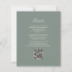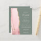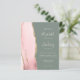 Den lämnat kant i eleganten med den moderna bröllopsinbjudan har en rosa vattenfärgsagat gräns som trimmas med faux guld glitter. Anpassadet kombinerar blekens handskrift, mönstertext och kursivt typsnitt på en djup grönt. På baksidan finns utrymme för information om bröllop på en solid sage-grönt, tillsammans med en QR-kodgäst som kan söka på webbplatsen och OSAN, vilket sparar kostnaderna för utskrift och utskick av separat OSA