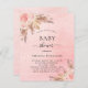 För en modern boho stil babydusch. En vattenfärgad, övertonad rosa med faux guld-gnistor. Dekoreras med ro guld och rosa blommigt, rosor och pampasgräs. Anpassa och lägg till information om namn och party.