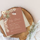 Budgeterad snyggt för babyduschpampasgräs och eukalyptus Modern boho-festinbjudan. I en contemporary terracotta, sage grönt, naturlig, gräddvit och svart färgväg.