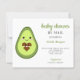 Budget Baby Shower med e-postinbjudan med kawaii söt avocado. En digital illustration av Kristine Lee. Mer information finns på www.kristineleedesigns.com
