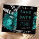 Elegant Moody Dark Floral Teal Silver WeddingDesignad av Akhates Designs