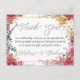 Visa din uppskattning för din familj och dina vänner med vår vackra blommigt tack för ditt kort! Vår unika utformning visar ett burgundi-, guld- och eukalyptus-blommönster på högkvalitativa karddjur. Perfekt för bröllop, födelsedagar, årsdagar och mycket annat kommer detta kort att lämna ett bestående intryck av er tacksamhet. Få dina kära att känna sig speciella med det här vackra tackkortet i dag! Anpassa den helt enkelt med dina egna detaljer.