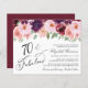Elegant och budgetvänlig 70:e födelsedagsfest inbjudan med "70 & Fabulous" i ett kalligrafiskt skript för chic och vattenfärgade buketter av burgundrött och rosa blommigtar med sage grönt grönery.