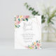 En brunch är ett perfekt sätt att fira speciella ögonblick! Fira din möhippa med denna blommigt-temade vykortsinbjudning med vattenfärgade blommor i rosa och toner med lush grey på hörnen som placeras ovanpå ett faux-guld-folie geometriskt ram. "Möhippa Brunch" visas i chicens skriptbokstäver med uppgifter om party i klassiskt serif-typografi. Som en del av budgetvalet här om Zazzle, bjuder dessa in kom i begränsada storlekar och pappra lagrar. Om du behöver ett annat storlekt eller pappert lagrar kan du överföra den här designen till ett standardformat 5x7 med hjälp av verktyg för designöverföring för fler alternativ.