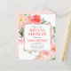Budgetera Anpassa den Eleganten Rosa, Vit och Perfekt Coral och Modern Watercolor Vår Stil Inbjudningskort för möhippan mot vit bakgrund med ditt budskap och information. Den här inbjudan till chic i snyggt innehåller blommor från ro och modernt botaniskt grönt med söt och elegant manustypografi för speciella bruden att vara firande.
