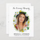 Modern Watercolor Daisy Flowers Sympathy Photo Funeral Tack du Cards. Dessa sympatikort för begravning har en unik fotomall i daisyns andetag i blommigt, namn och data, på en modern vit design. Anpassa dig med ditt tack. Dessa minneskort är perfekter för begravning av tackkort eller firande av livets tackkort. COPYRIGHT © 2020 Judy Burrows, Black Hund Art - Med alla Höger reserverade. Budgeterad Blommigt - sympati för fotobegraven Tack