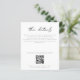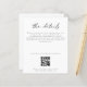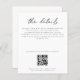 Ett ekonomiskt alternativ i BUDGET på en mindre storlek på 4,5 x 5,6 tum (110 lbs vikt), som är av samma tjocklek som ett vykort (är dock inte lämpligt för använda som vykort). OBSERVERA ATT DET FINNS EN PER lakan. Budget Bröllop - Information QR-kodskripthölje. Berätta för dina gäster om detaljer som riktningar och bostadsinformation för bröllop när du skickar inbjudningar. Den här eleganten har ställt in stor typografi för snyggten för rubriken Information och resten av texten kan enkelt personlig till ord tillsammans med webbplatsens QR-kod. Du kan ta bort QR-koden om du vill genom att anpassa den ytterligare. Du kan välja valfri färg för färg för text och bakgrund på båda sidor genom att anpassa ytterligare alternativ.