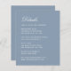 Ett mycket enkelt kort med detaljer om bilaga till budgeten i bröllop, bara en vit text om dammig blå bakgrund. Titelinformationen (som kan ändras) skrivs i ett kalligrafiskt skript för elegant.