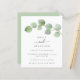 Ett ekonomiskt alternativ i BUDGET på en mindre storlek på 4,5 x 5,6 tum (110 lbs vikt), som är av samma tjocklek som ett vykort (är dock inte lämpligt för använda som vykort). OBSERVERA ATT DET FINNS EN inbjudan per lakan. Budgeterad Elegant Eucalyptus Lövs Spara datumet. En elegant gren av eukalyptus i grönt med en liten bit guld flödar från den övre högerna. Anpassa texten till dina egna detaljer. Du kan också ändra stilar och färg samt färg i bakgrunden genom att anpassa ytterligare alternativ om du vill.