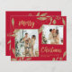 Budget, Elegant, Modern Red och Guld Botanical Löv 2 Photo Collage God jul Helgdag (tunn!) kort. Obs! Lägre papper än ett vykort! Den här festliga, vismliknande två (2) fotokortsmallen innehåller ett söt fotokollage, faux guld foil botanical löv, winterbär och säger God jul! Texten "God jul" hälsning är skriven med ett vackert, handskrivet typsnitt på karminröd färg. På motsatt sida lämnar ett foto med guld ram och faux guld glitter vågrät arrangemangt på rött. Underbart val för din familj och dina vänner under denna jul och Julhelg. Helgdagskort för billigt.