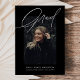 Ett enkelt Trendig Calligraphy Photo Studenten-meddelande innehåller ett foto på framsidan och två foton på baksidan.