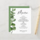 Eucalyptus Flat Menu Card. Öka din bröllop-matupplevelse med våra krävande menykort i bröllop som är förankrade med vackra eukalyptus löv. Dessa menykort är designade för att komplettera din elegant och tillför ett inslag av naturskönhet och sofistikering till ditt mottagande bord. Det finns tillgängliga alternativ för anpassade eftersom det är skapat som mall, vilket gör att du kan anpassa menykorten med namn, bröllop-datum och ett urval av fantastisk-diskar. Inbjudan dina gäster att ägna sig åt en kulinarisk resa med menykort som fångar naturens innersta väsen. Med våra eukalyptus-adorned-menykort i bröllop är du säker på att du lämnar ett bestående intryck och skapar omhuldade minnen från din speciella dag. Om du vill ha matchande objekt följer du länken: https://www.zazzle.com/collections/eucalyptus_green_symphony_g140-119861040570325510 eller helt enkelt skriva G140 i sökrutan i den här butiken (butik). I fodral behöver du hjälp med anpassning, och du kan gärna kontakta butiken