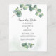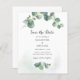 Budgetkort för eukalyptus Succulent Blommigt Spara datum meddelande. Enkel att anpassa genom att klicka på knappen "Anpassa"