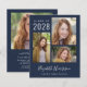Budgetvänlig mörk blått studenten-annonsering och partiinbjudan med 3 bild fotokollage, "Student" i ett snyggt vitt skript och gradens namn, klassår och skola eller universiteten i modern vit typografi. Lägg till ytterligare information om bild och studentfest i motsatt riktning.