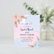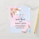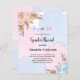 För en modern boho stil babydusch avslöjar gender party. En blå, rosa, vit, vattenfärgad bakgrund. Dekorerad med ro guld, rosa och ljusblå blommigtar, rosor, pampasgräs. Anpassa och lägg till information om namn och party.