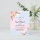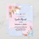 För en modern boho stil babydusch avslöjar gender party. En blå, rosa, vit, vattenfärgad bakgrund. Dekorerad med ro guld, rosa och ljusblå blommigtar, rosor, pampasgräs. Anpassa och lägg till information om namn och party.