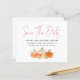Ett ekonomiskt alternativ i BUDGET på en mindre storlek på 4,5 x 5,6 tum (110 lbs vikt), som är av samma tjocklek som ett vykort (är dock inte lämpligt för använda som vykort). OBSERVERA ATT DET FINNS EN PER lakan. Budget Glittery Pumpkins QR-kod sparar datumet. Pumpor och blommigtar i autoskuggor, orangar, terrakottas och krämer, med en beröring av guld faux glitter. Med ett modernt skript som anger Spara datum och resten av texten kan du enkelt anpassa med dina detaljer. Lägg till QR-koden på webbplatsen bröllop på baksidan eller ta bort den och texten på baksidan om det inte behövs.