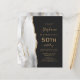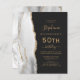 Den nuvarande 50:e födelsedagsfest inbjudan i elegantens lämnat kant har en grått och vit vattenfärgad agat gräns som trimmas med guld faux glitter. Anpassadet kombinerar handskrift, rityta och kursivt typsnitt med guld-färgad på en svart bakgrund. Den omvända sidan har en matchande agate-design.