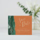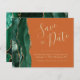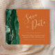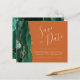 Med den här eleganten sparar du datumkortet och får en ny grönt vattenfärgen agate gräns som trimmas med faux guld glitter. Anpassadet kombinerar handskriftsskript för guld-färgad, tryckplåt och kursivt typsnitt på en bränd orange eller rost bakgrund. Den omvända sidan har en matchande framväxande grönt och guld agate-design.