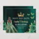 Meddela din speciella dag med en förtjusande Emerald Grönt Princess Quinceañera Spara datuminbjudan. Den här inbjudan anger tonen för ett royal firande. Den innehåller en vanlig smaragdpalett och information om eleganten i färg. Med delikata accenter som passar en prinsessa fångas magin av din kommande quinceañera. Den här tidlösa designen av gäster från inbjudan för att markera sina kalendrar och förbereda en oförglömlig dag fylld med skönhet, glädje och omhuldade minnen när du firar din 15-årsdag i stil.