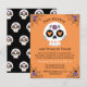 En söt Halloween-sockerskalle med blommor och hjärtan dekorerar den här festinbjudan. Anpassa den till dina hemska vänner. Designad av Blackberry Boulevard.
