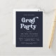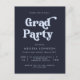En inbjudan till studentfesten snyggt med "Grad Party" i stil i ljusblått på mörk blått bakgrund. Anpassa med dina detaljer.
