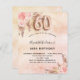 A ro guld, rosa, skorstensbildning mot metallisk tittar bakgrund. Dekorerad med ro guld och rosa blommigt, rosor, pampasgräs. Anpassa och lägg till information om namn och party. Nummer 60 skrivs med ett stil-teckensnitt med ballong.