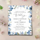 Den här eleganten allt-i-ett-inbjudan från vår Blue Pressed Blommigt innehåller söta blommor i dammiga blåtoner med delikat grönt, parad med ett klassmodernt skript. Perfekt för vår, sommar och fall party!