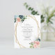 Budgeterad inbjudan till Geometric Wedding till Guld-Blommigten för vattenfärgsflottan. Blåblå och Rosa blommor med Guld-dekoration