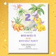 Dygnsbudgetdinosaurer för andra födelsedagsinbjudan. Lätt att ändra texten. Roligtens vattenfärgsdesign för pojke eller flicka.