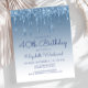 Det här trendigets 40-årsinbjudan har en glatt blå faux glitter drip gräns och blå ombre-bakgrund. Ord "40:e födelsedagen" och hedersgästens namn visas i handskriftsskript i avslappnad med resten av anpassadet i blått sans serif-teckensnitt. Samma blå glitter-droppdesign visas på baksidan.